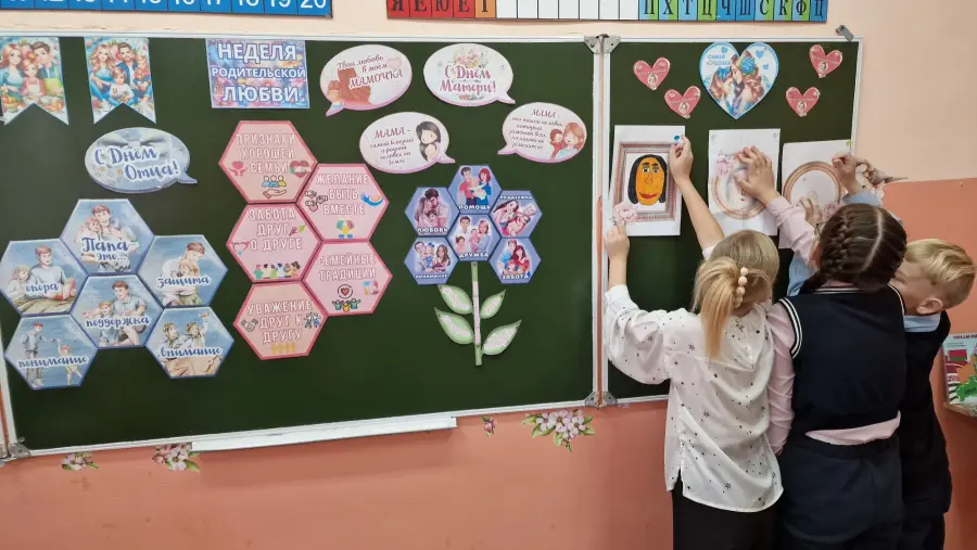 Тематическое оформление школы: стенд «Неделя родительской любви»