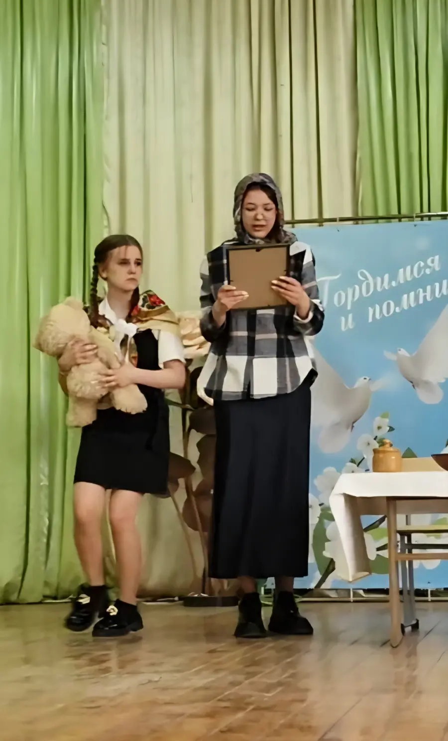 Были исполнены песни, стихи, инсценировки и танцы. Декорации и костюмы на военную тематику прекрасно дополнили происходящее. Участники и зрители фестиваля через разножанровое творчество смогли прочувствовать и понять то, что пережили наши отцы и деды в непростое военное время. В каждом творческом номере звучала безграничная благодарность за мирное небо воинам, которые ценой своих жизней подарили нам Победу